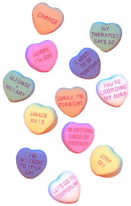 Of course, these days candy hearts say stupid things like "FAX ME" or "TRES CHIC". Some of the