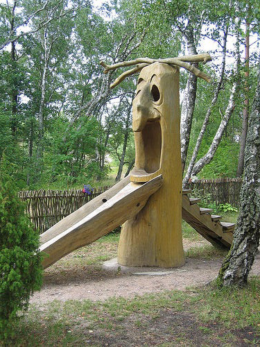 Exhibit B is a see-saw from what I can only assume is the same park. The question is, was the witch at some point holding a broom? Or is she just symbolically