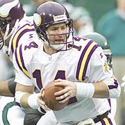 I feel asleep briefly in front of the television yesterday afternoon, bored by another episode of "Who Creams The Vikings This Week?" Somehow, I woke up in 1997, because the man leading the Purple-helmeted Warriors was none other than Brad Johnson. You remember Brad, don't you?