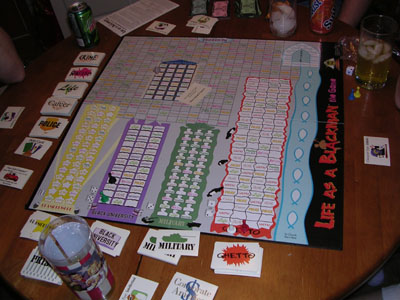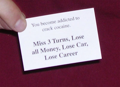 up a Ghetto card which said, "You've been shot in a drive-by shooting. Game over".