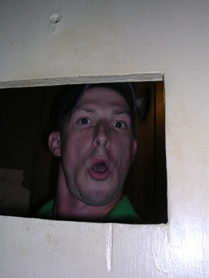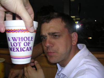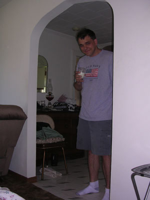 You know, the morning started out so well. I got up, noticing the effects but still chipper, and head over to wadE's. After about ten minutes, though, I notice a marked downturn in my outlook. Pretty soon I was lying on Al's mattress, concentrating on breathing, and trying not to die. This isn't right, thought me. I don't get hangovers. It was looking pretty ugly there... okay, I was looking pretty ugly there for a bit. Which was unfortunate, because I appreciate a good greasy hangover breakfast as much as anybody. So, for the first time in... years, really, I make my way to wadE's bathroom and... yak. Profusely. Which was not fun. But I'd forgotten how good you feel after that. I was on top of the world, baby. I proceeded to stuff myself with Doris' a.m. goodness.