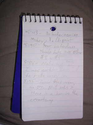 1:00 - Closing time. I leave the Saloon and wander out to try