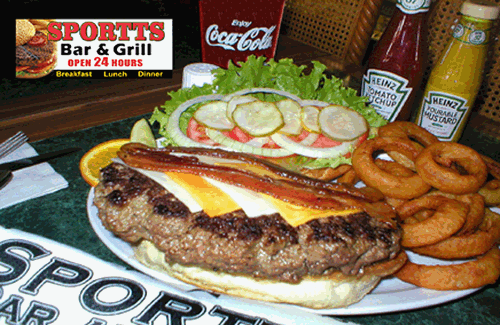 While it doesn't look that big, the really issue with the Sumo Burger is the grease. Sportts uses Grade F meat,