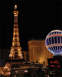 Paris: The half-scale Eiffel Tower is yet another surreal feature of the strip. A